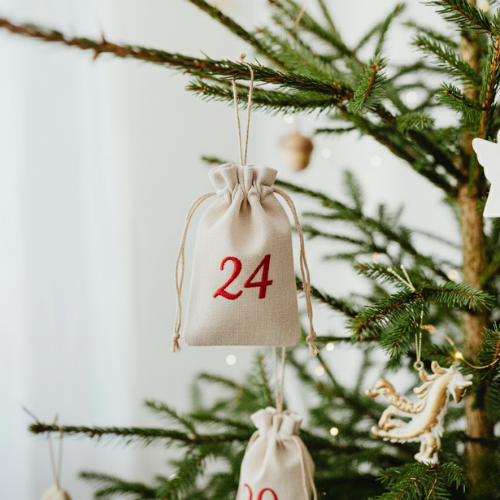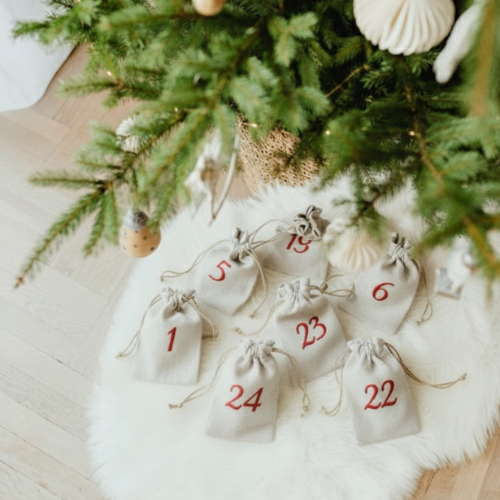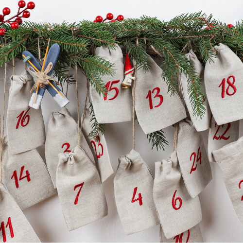 Poniżej znajdziesz inspiracje, jak wykorzystać lniane lub bawełniane woreczki do kalendarza adwentowego.