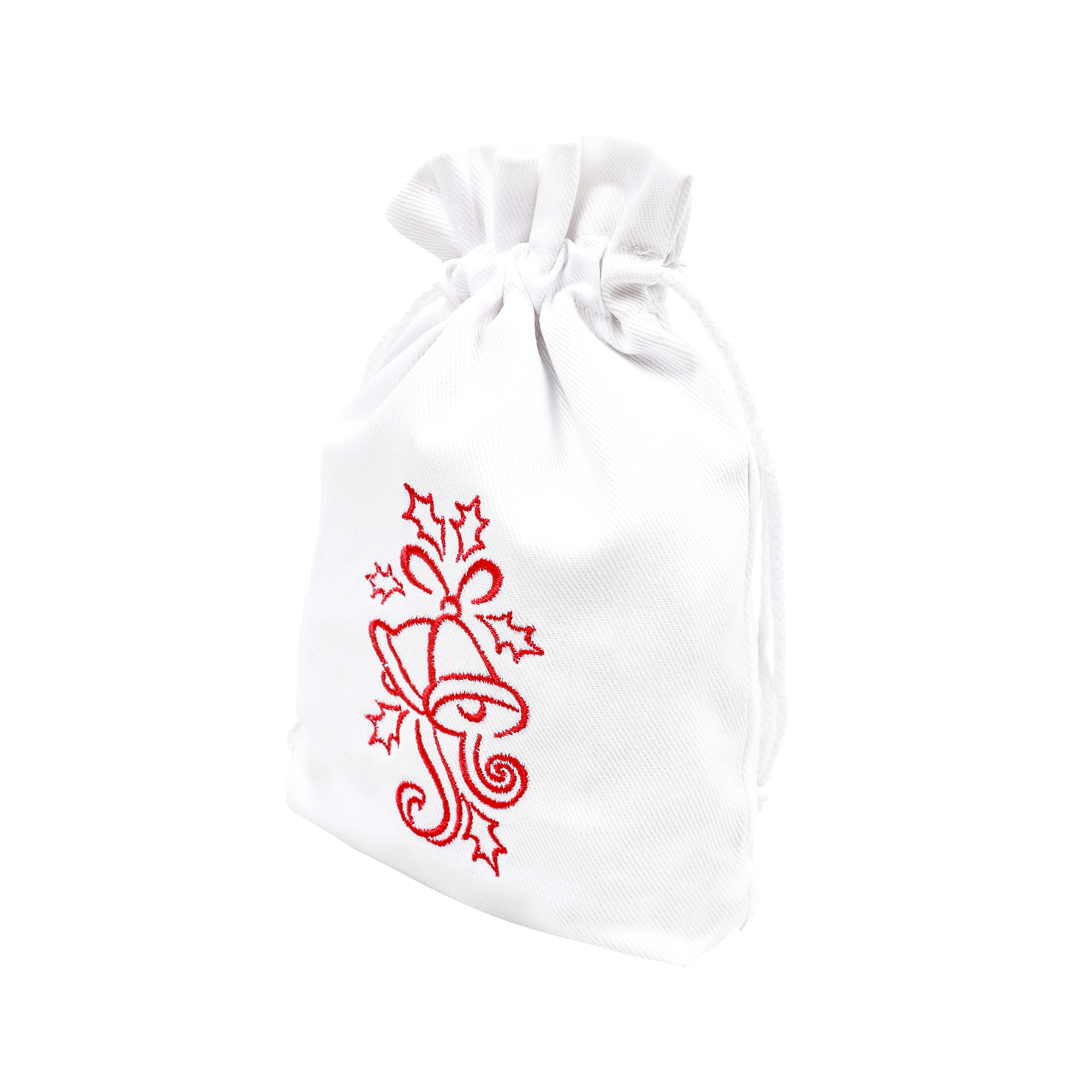 Bawełniany worek świąteczny w kolorze białym z haftem – ozdobne dzwoneczki
