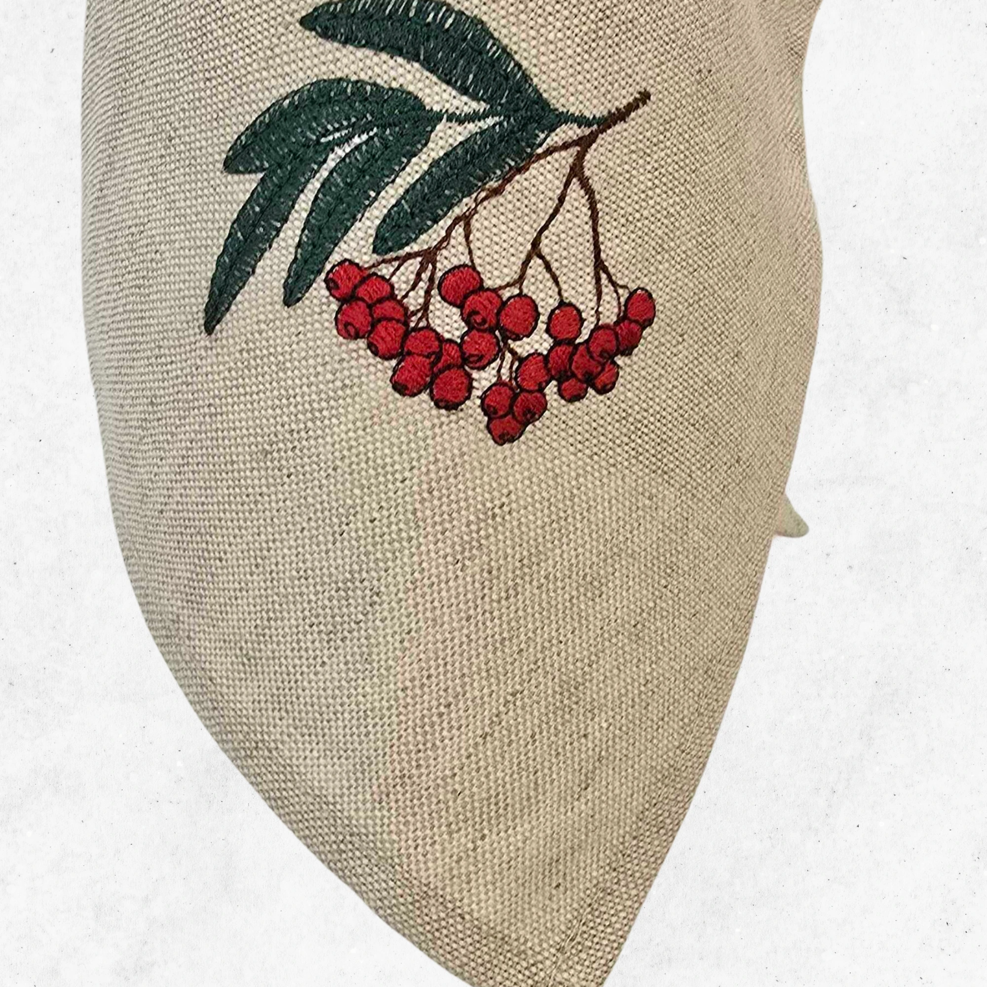 Lniana ścierka kuchenna z haftem – jarzębina