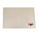 Lniana ścierka kuchenna z haftem – serce na gałązce