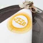 Uszyta z naturalnego lnu w śnieżnobiałym odcieniu, przyciąga wzrok swoją prostotą i klasą. Jej największą ozdobą jest subtelny haft IHS – tradycyjny, chrześcijański symbol, który wprowadza duchowy wymiar do stołowej aranżacji.