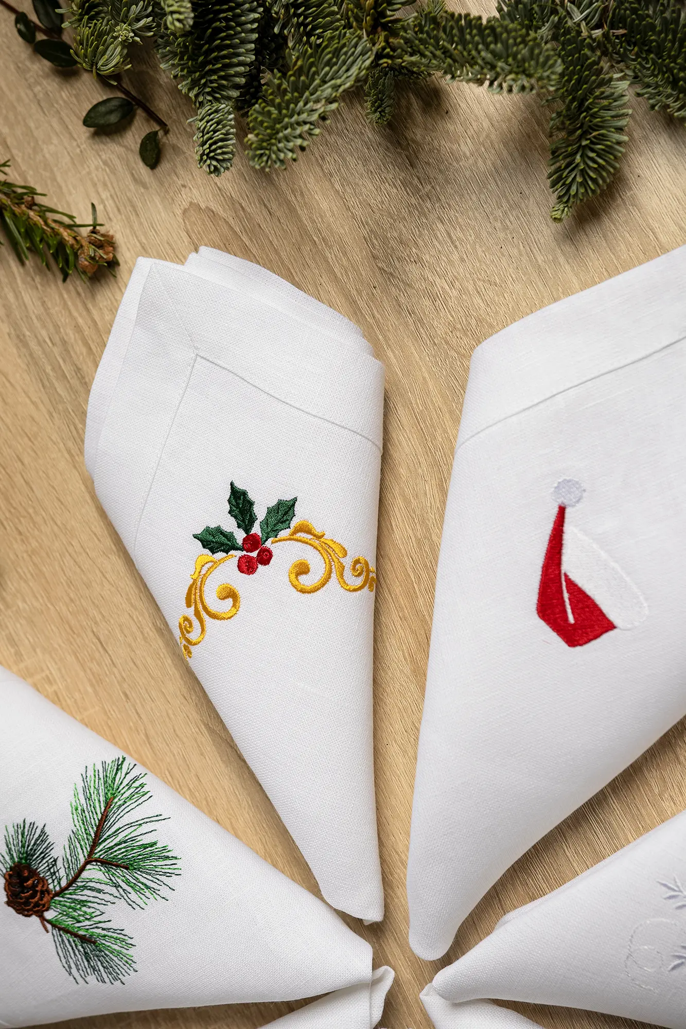 Nasze białe lniane serwety z haftem świątecznym są idealne: