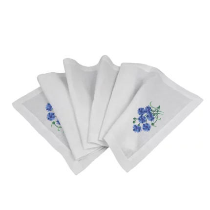 Lniana serwetka koktajlowa biała 40x40cm z haftem – maki