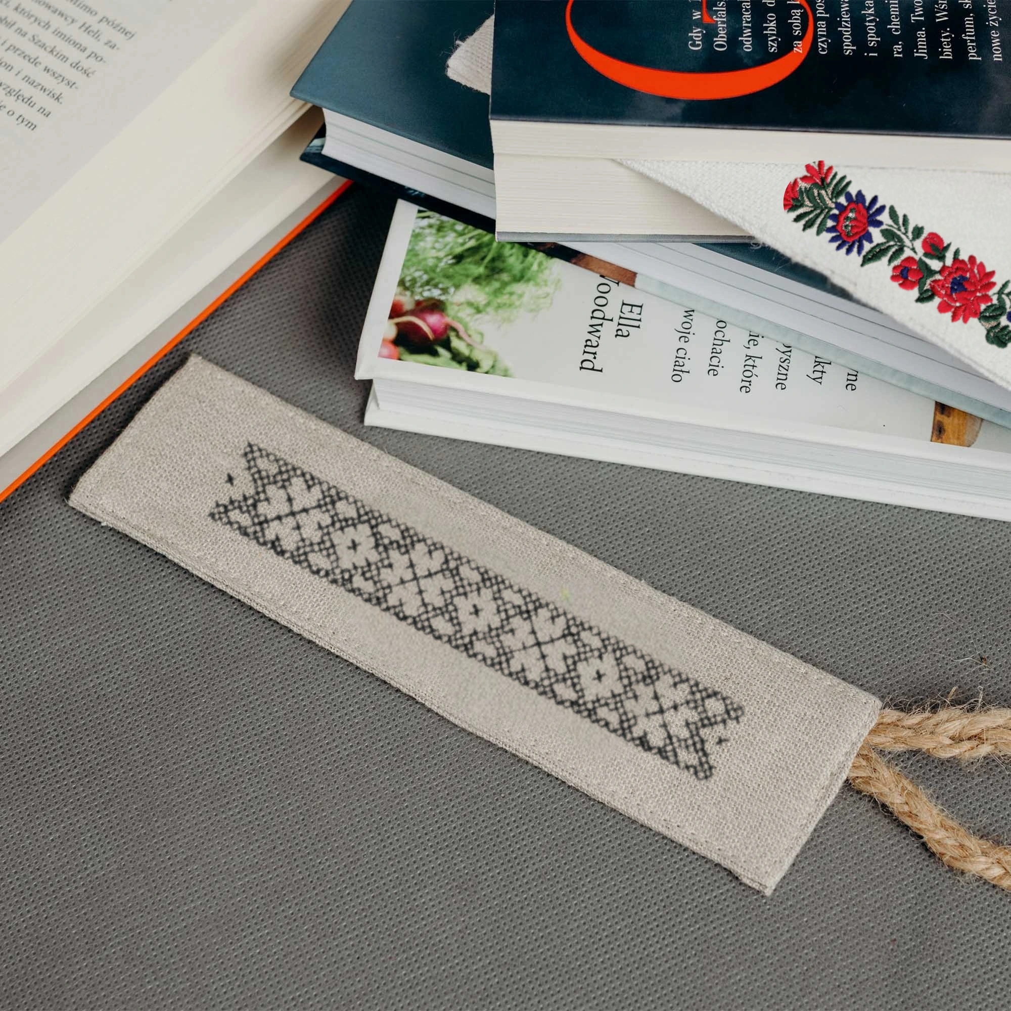 📖 Lniana zakładka do książki – z haftem inspirowanym polskim folklorem