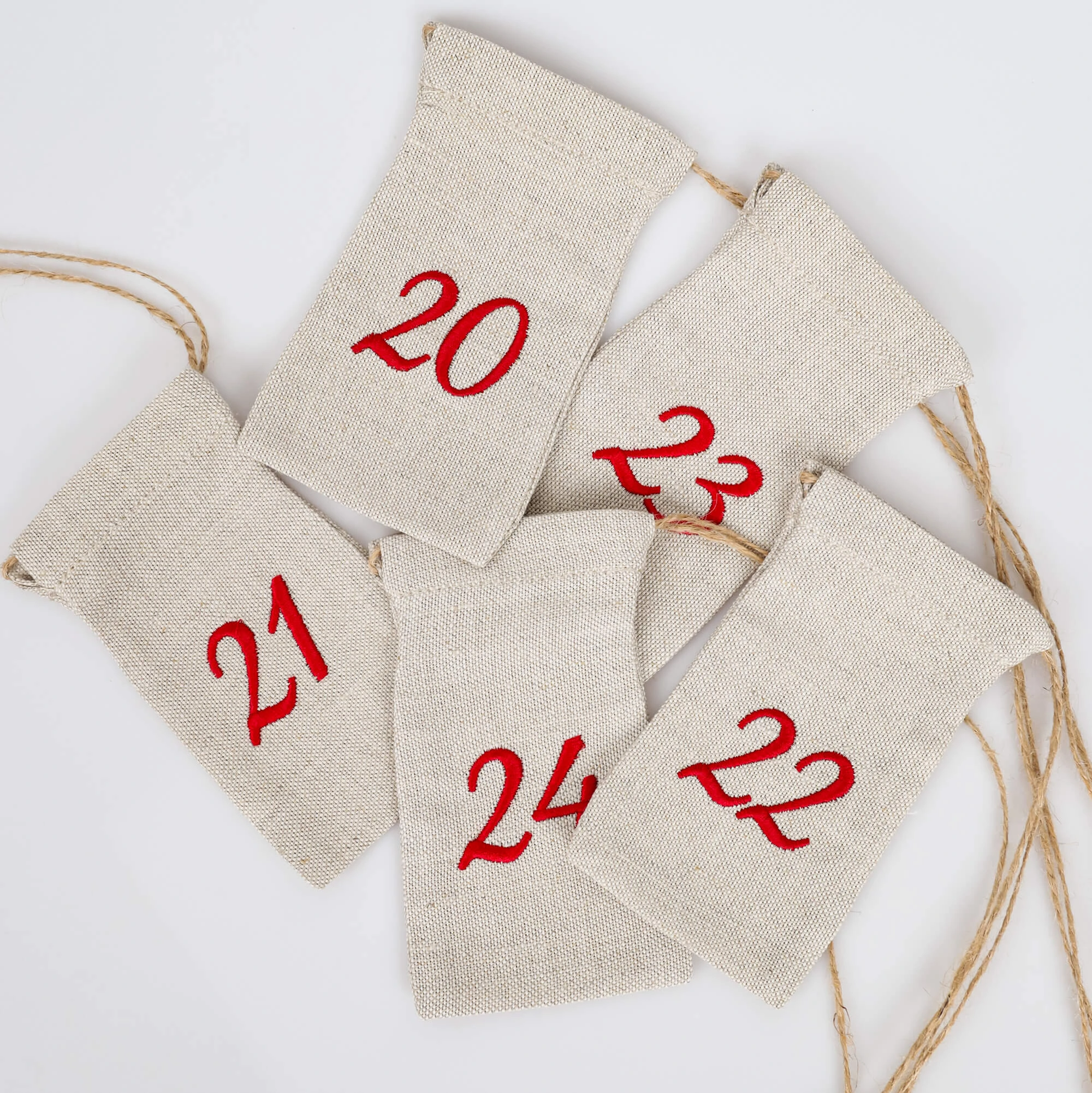 Woreczki lniane do kalendarza adwentowego DIY – 24 woreczki z wyhaftowanymi numerami