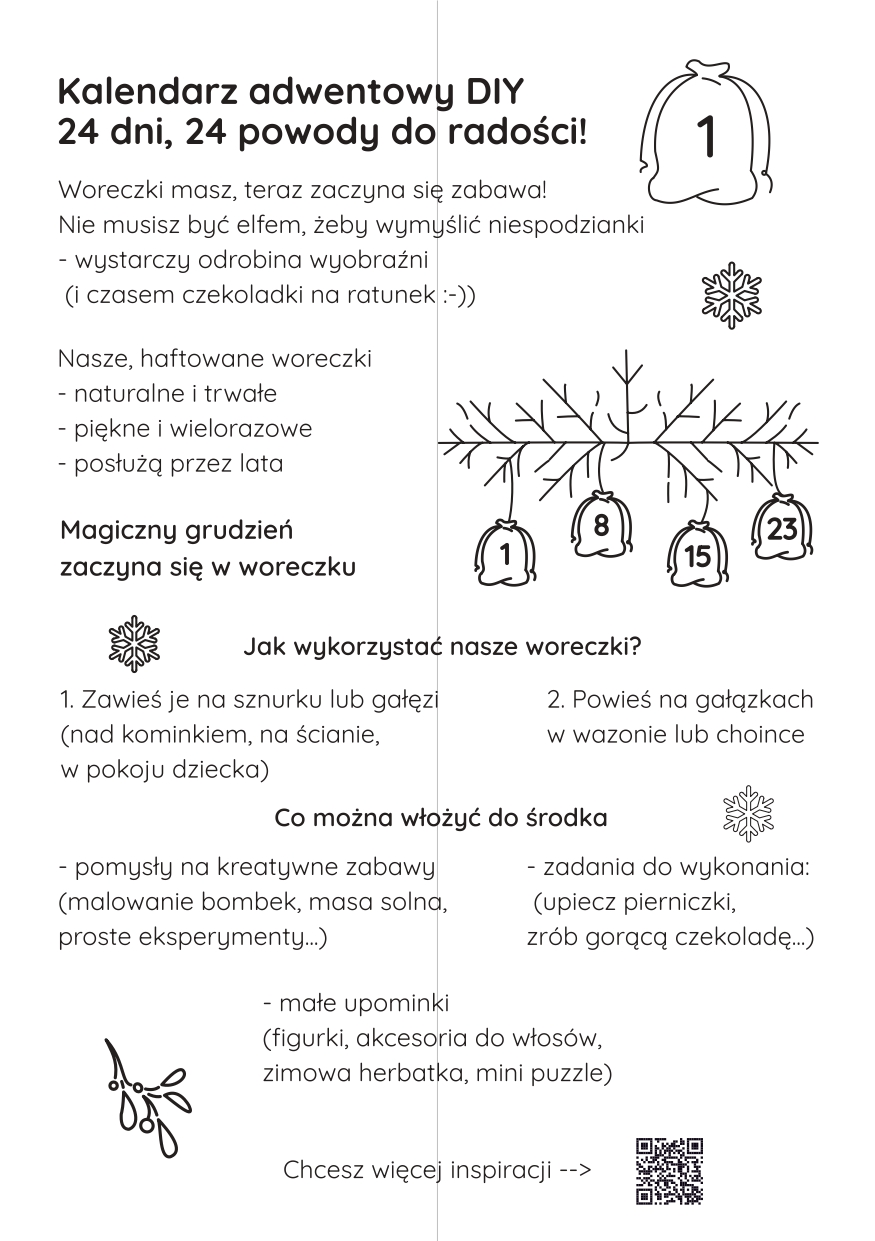 ✅Zestaw zawiera: 24 woreczki z wyhaftowanymi numerami 1–24