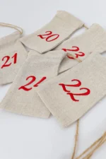 Woreczki lniane do kalendarza adwentowego DIY – 24 woreczki z wyhaftowanymi numerami