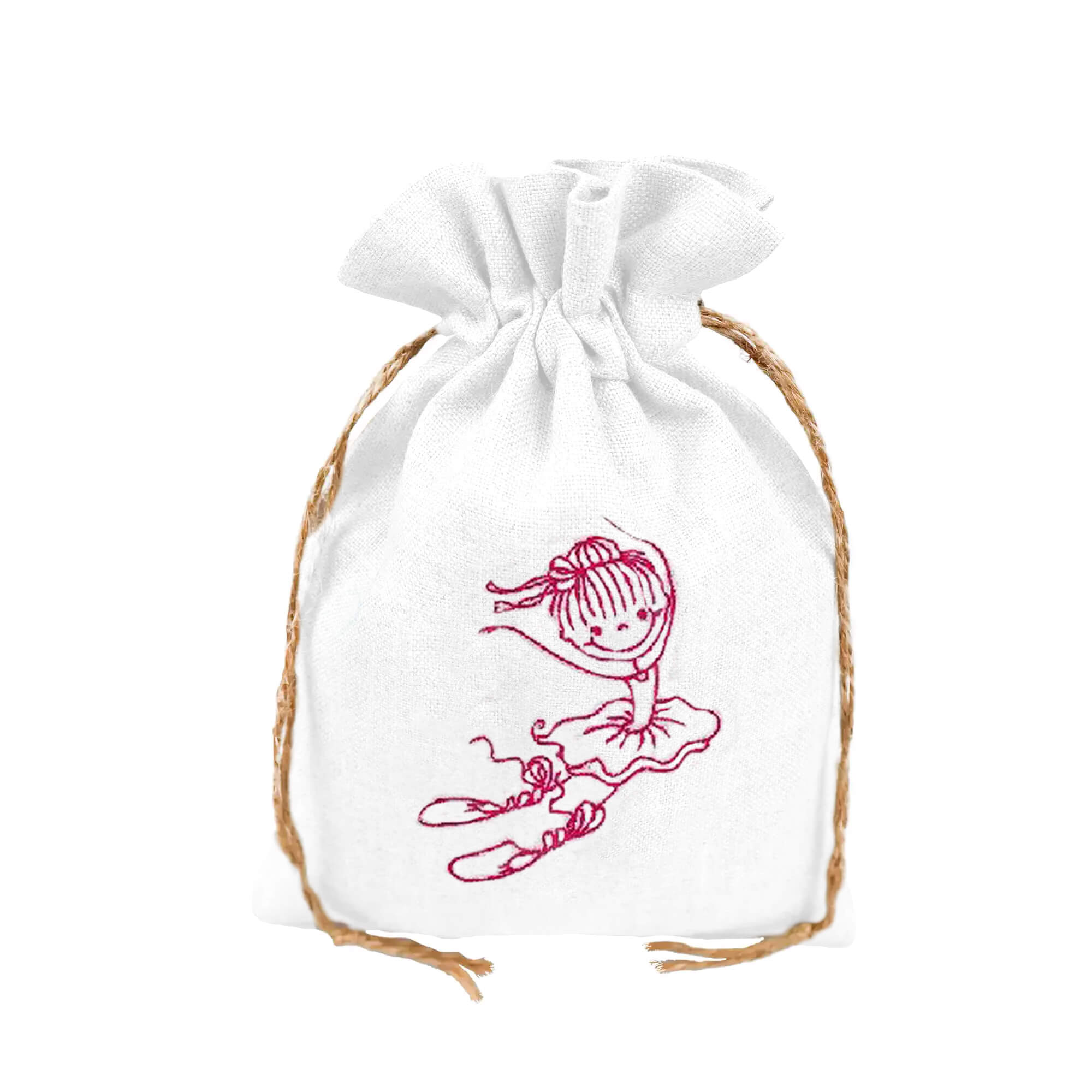 Lniany woreczek dekoracyjny – z haftem – baletnica różowa 15x20cm