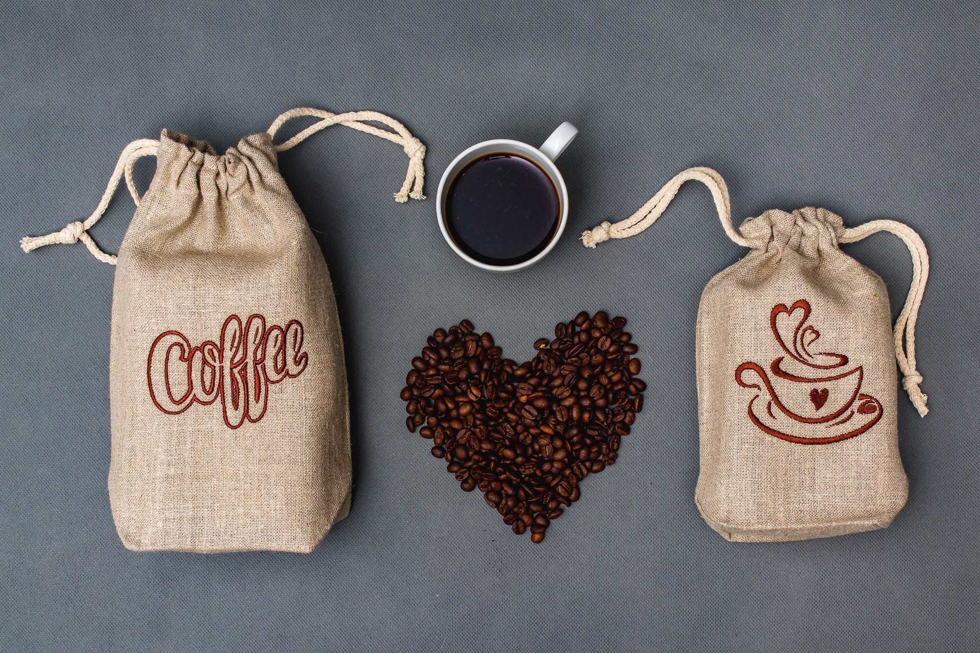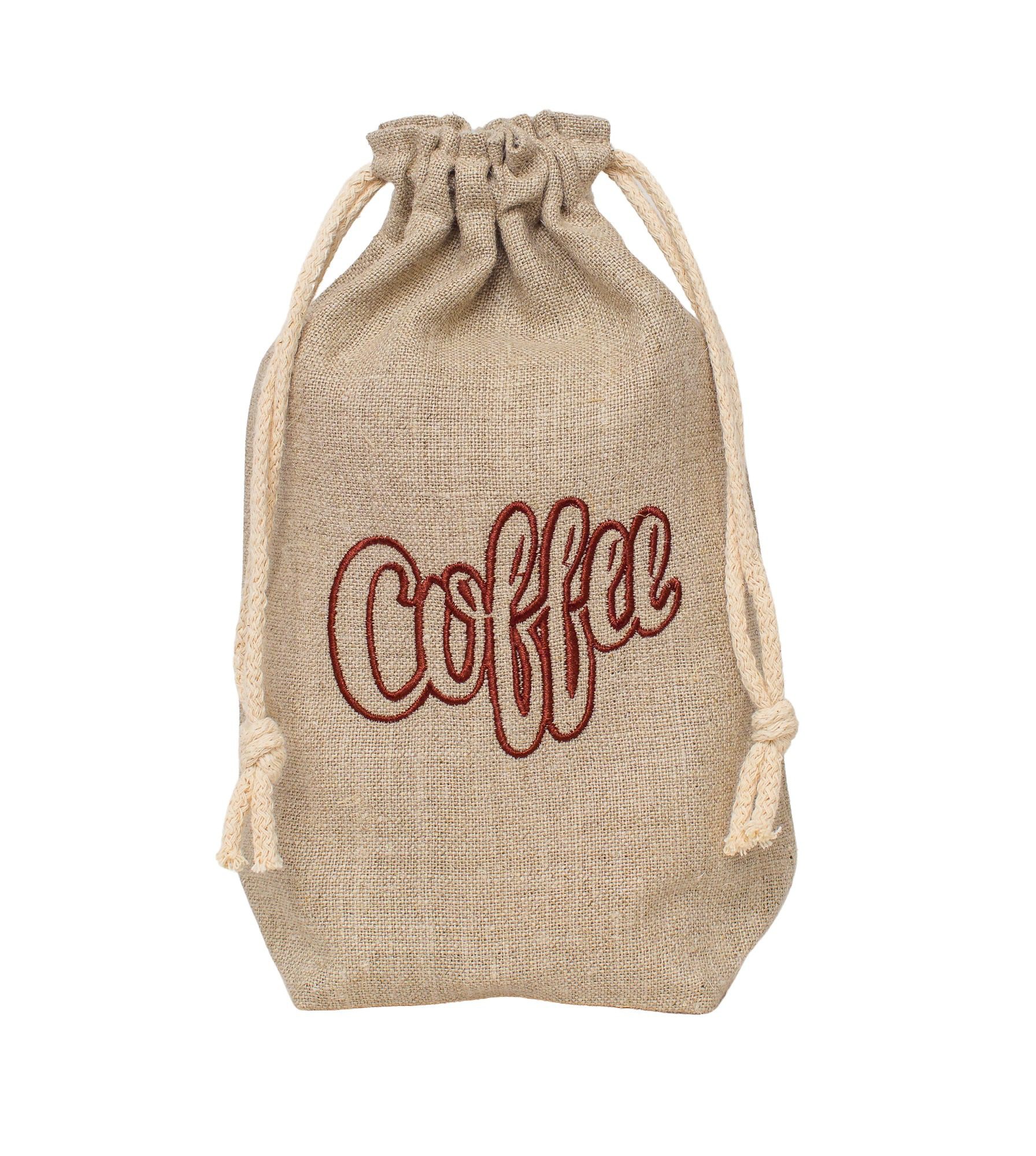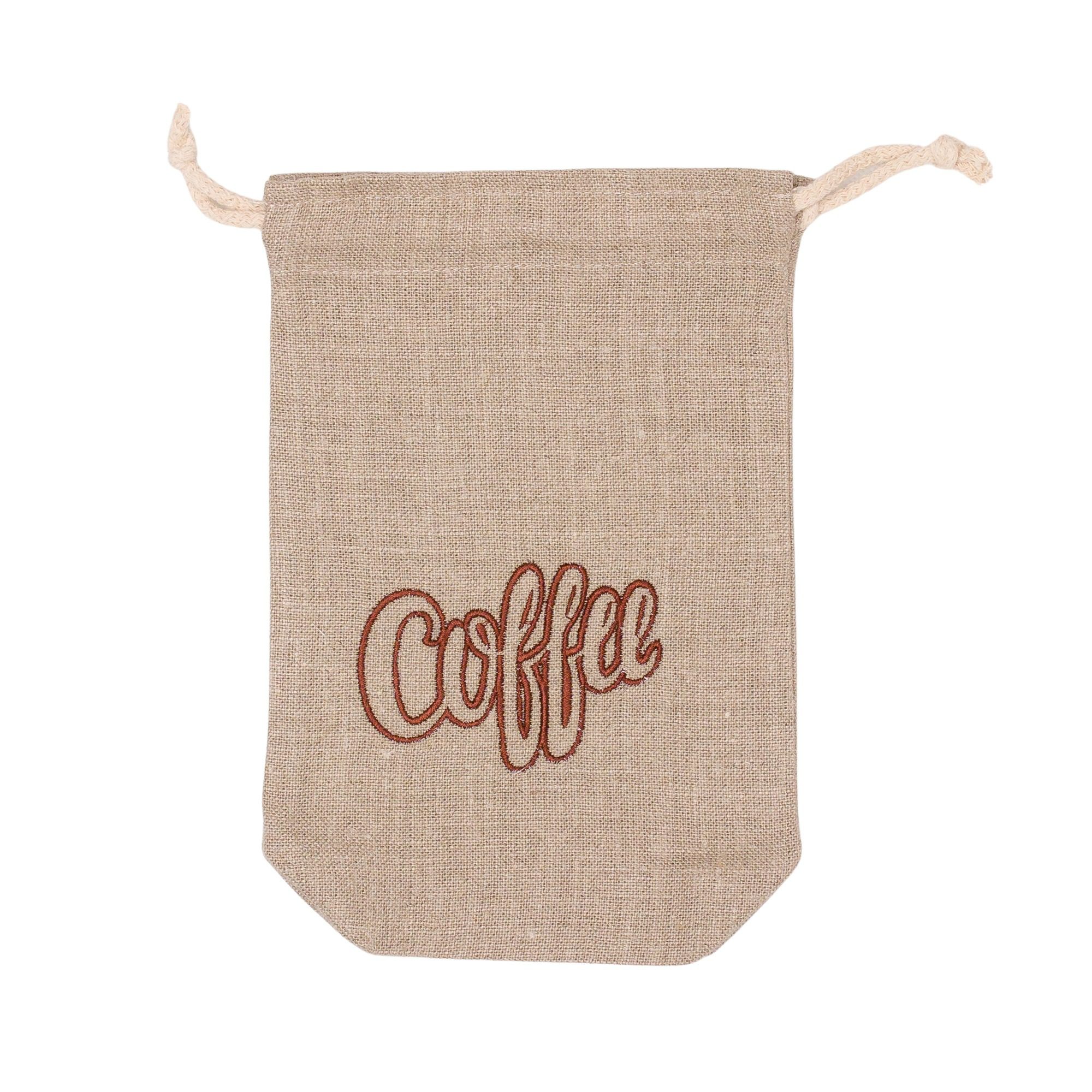 Lniany worek na kawę z haftem – 15×18 cm