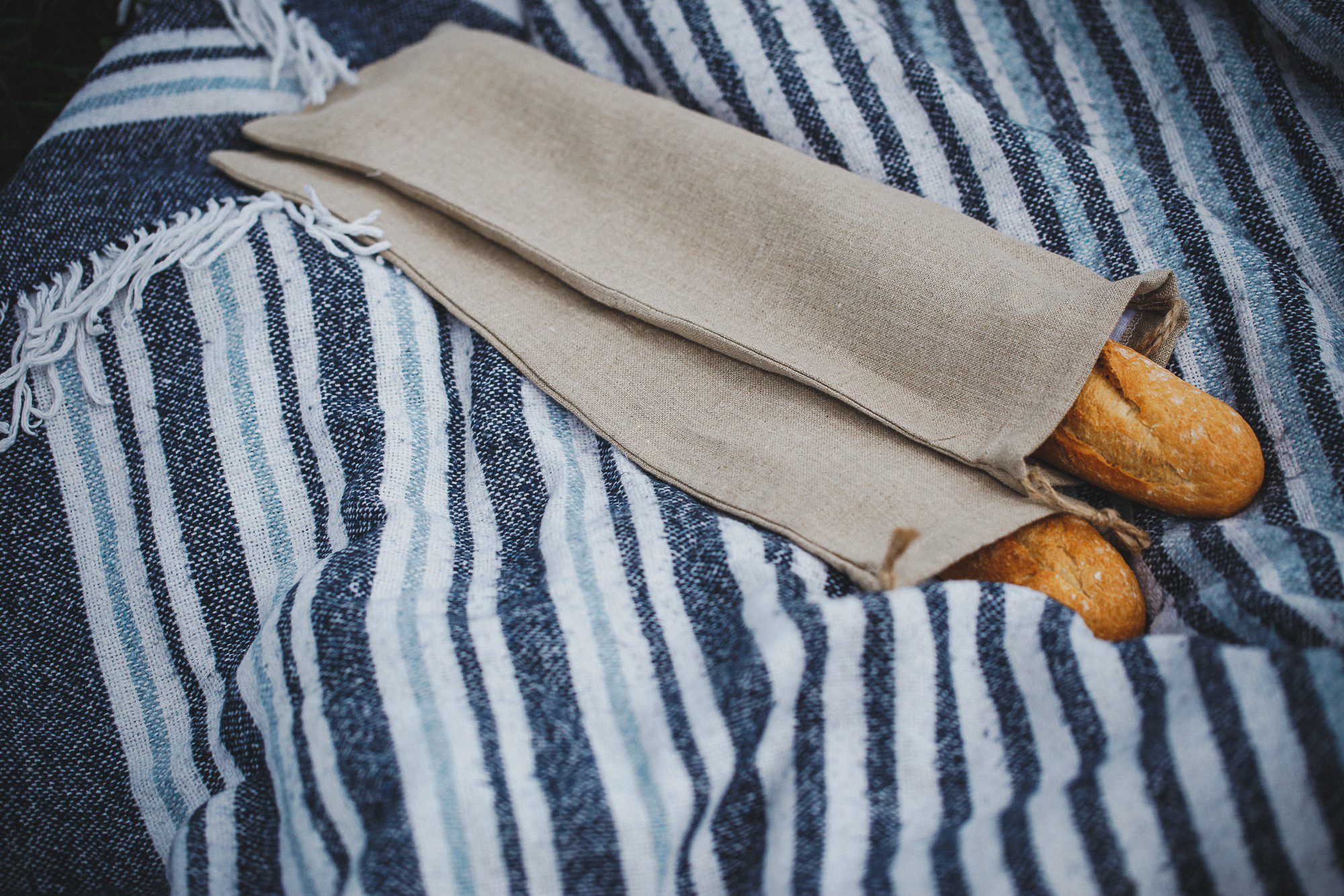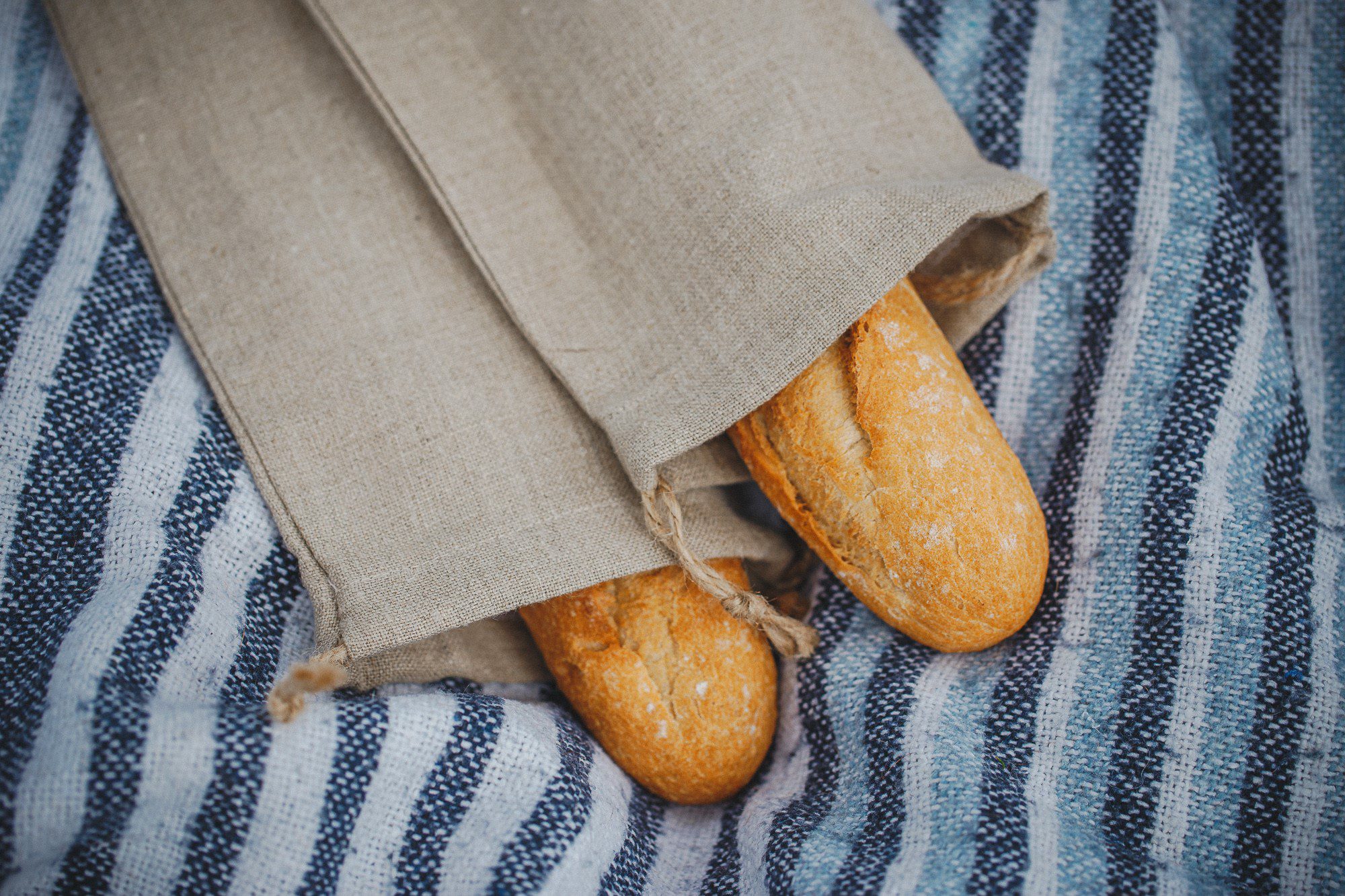 ✅100% lniany worek polskiej produkcji przeznaczony do przechowywania bagietki.