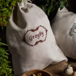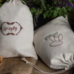 Na froncie worka znajduje się haft z motywem grzyba lub estetycznym napisem – prostym, ale charakterystycznym. Haft ułatwia organizację i sprawia, że worek możesz spokojnie postawić na półce w kuchni lub spiżarni. Estetyka idzie tu w parze z praktycznością – worek możesz też wykorzystać jako część prezentu, np. na święta, dodając do środka suszone grzyby z własnego zbioru.
