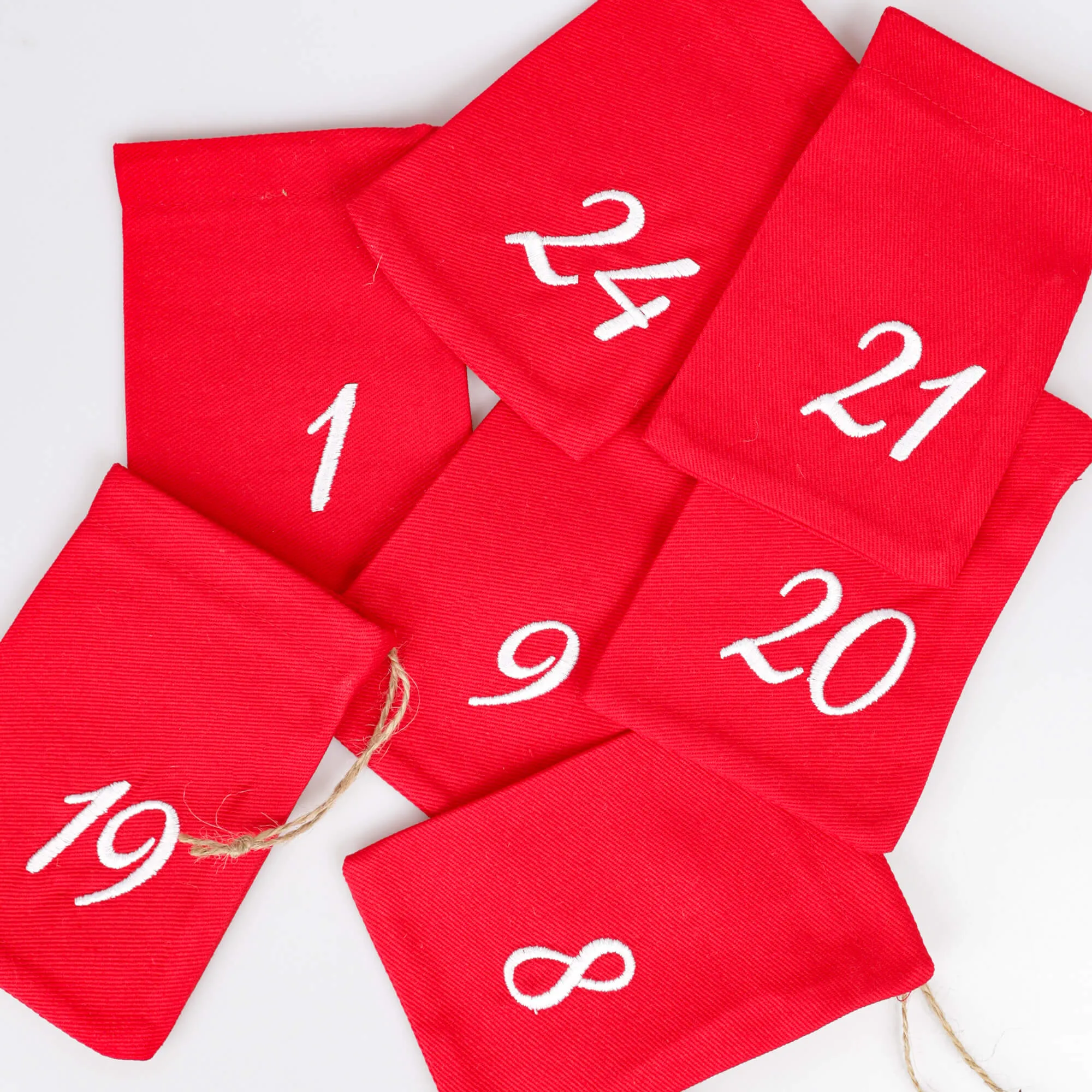 Kalendarz adwentowy DIY – woreczki z tkaniny z haftowanymi numerami 🎅