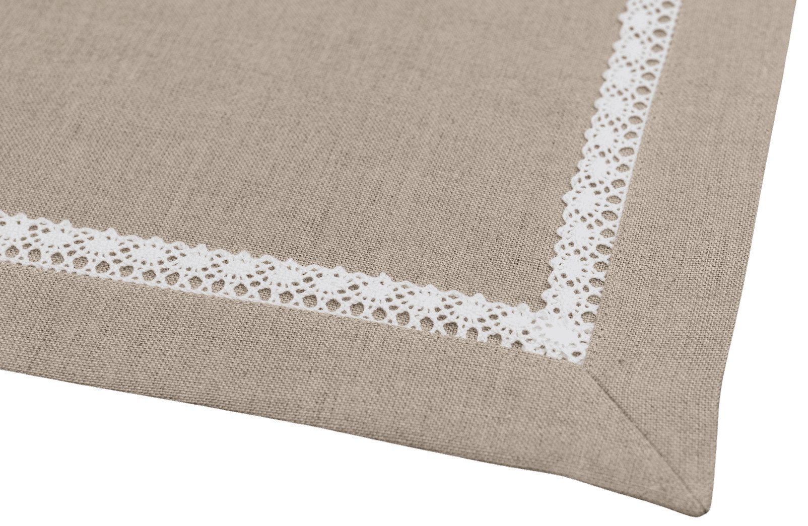 Lniany obrus w kolorze naturalnym z ozdobną koronką