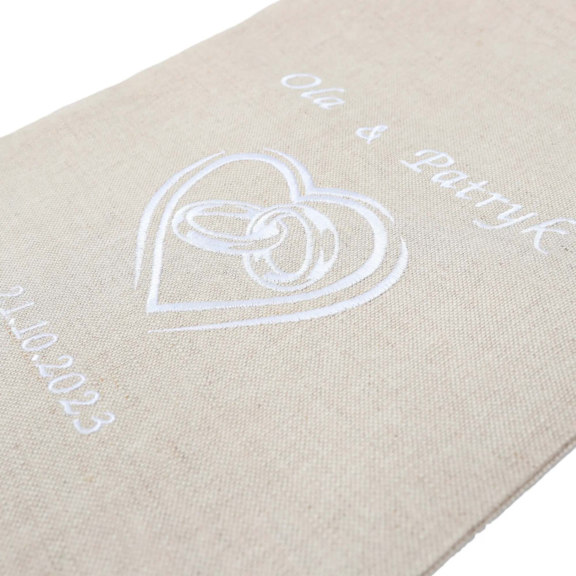 🤍 Subtelny design – neutralny kolor lnianej tkaniny idealnie współgra z różnorodnymi motywami dekoracyjnymi, zapewniając stylowy i spójny wygląd Twojego ślubu.