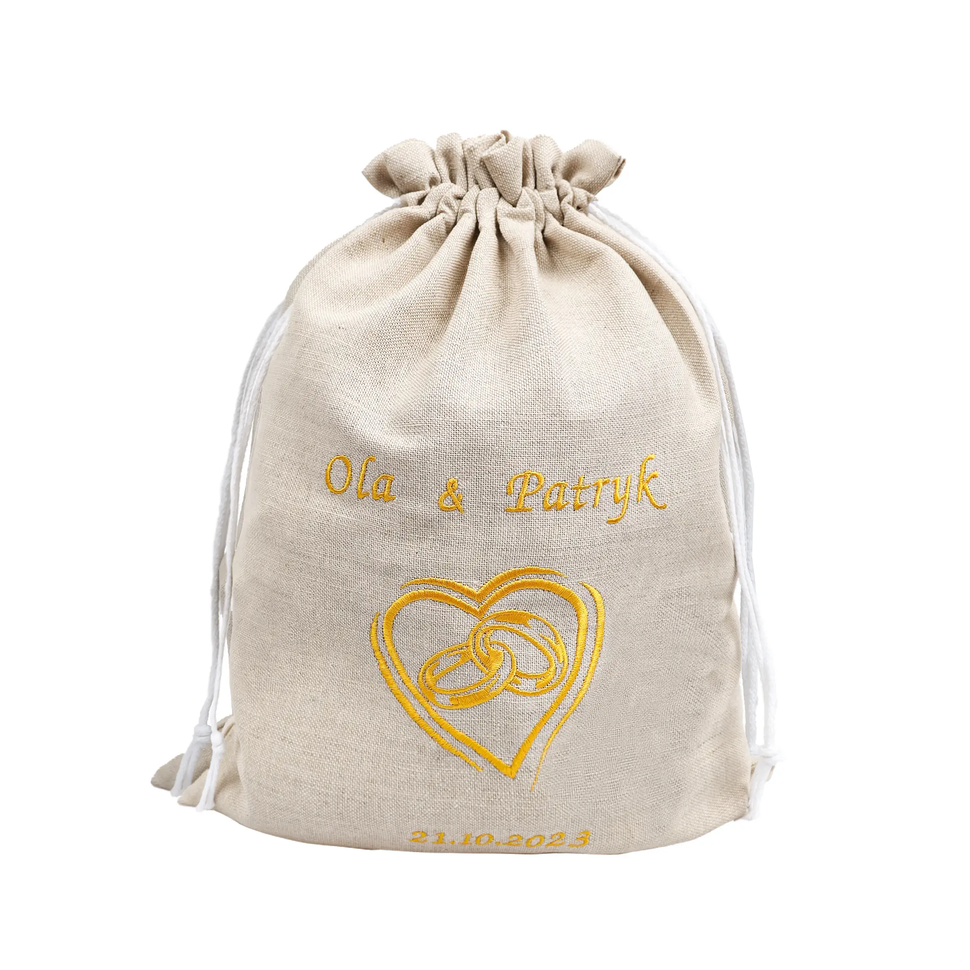 Postaw na polską jakość i niepowtarzalny charakter – wybierz lniany worek ślubny z personalizacją.
