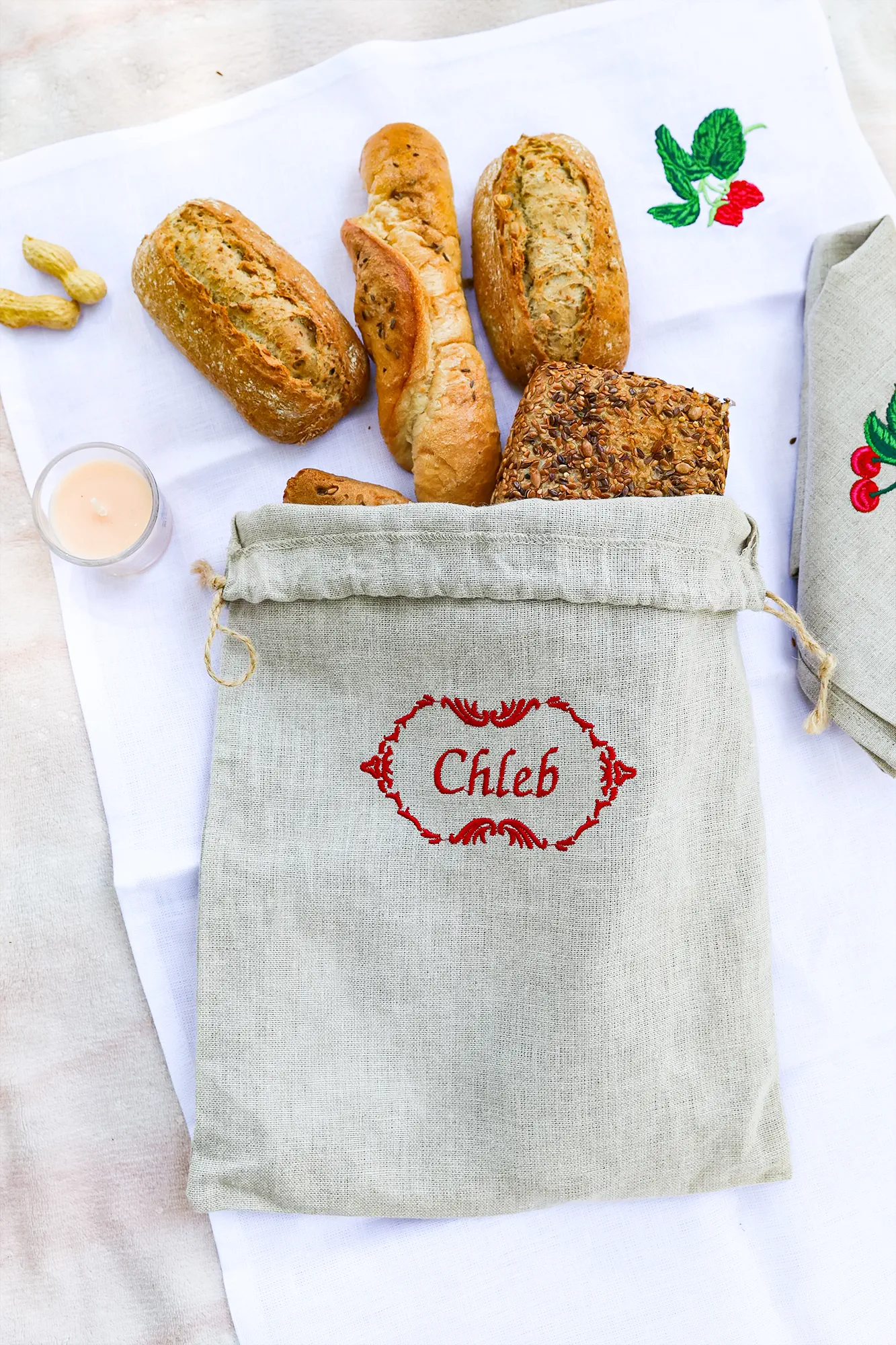 Worek na pieczywo z haftem – różne warianty – naturalny