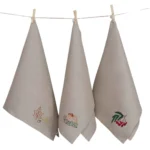 Zestaw 3 naturalnych lnianych ścierek z haftem – jesień