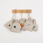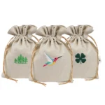 Lniane woreczki dekoracyjne z subtelną falbanką i haftami w motywach natury – koliber, koniczynka oraz las – to połączenie elegancji, funkcjonalności i ekologii. Naturalny len nadaje im ponadczasowy charakter, a starannie wykonane hafty czynią z nich wyjątkowy dodatek do domu lub prezentu.