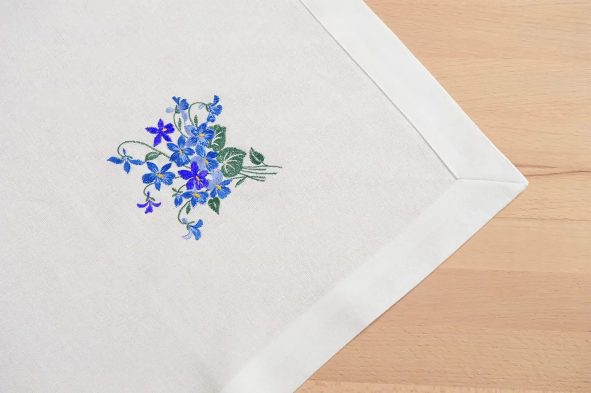 Haftowane serwety lniane stanowią alternatywę opartą na trwałości i jakości wykonania. Wzór tworzony jest poprzez przeszycia, a nie nanoszenie koloru na powierzchnię tkaniny, co eliminuje ryzyko blaknięcia czy farbowania. Haft zachowuje swój wygląd niezależnie od liczby prań i nie wpływa na strukturę samego lnu.