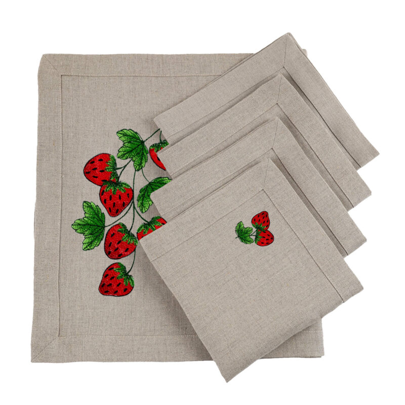 Bieżnik lniany z haftem – truskawki