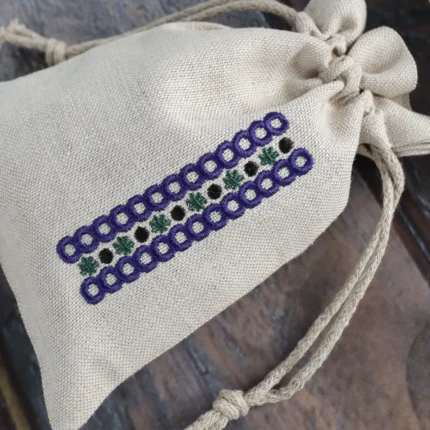 Lniana serweta w kolorze białym z haftem róża i lawenda