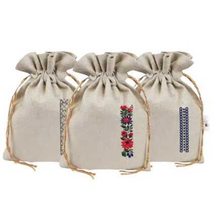Zestaw 3 białych lnianych ścierek z haftem - zioła polskie